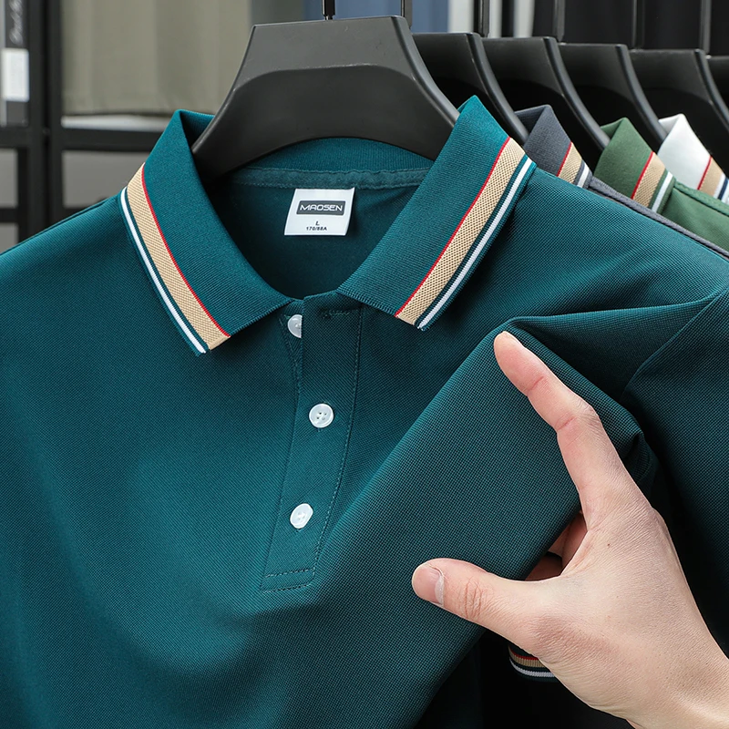 New Summer High Quality Fashion Golf Lapel Polo Short Sleeve Business Men Design Breathable Casual Cool T-shirt Top
