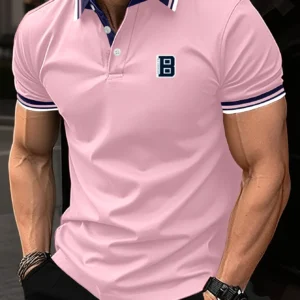 Fashion Casual Business Button Polo Shirt Mens Color-Blocked B Letter Print Short Sleeve Polo Breathable Golf Sport Polo Tshirt