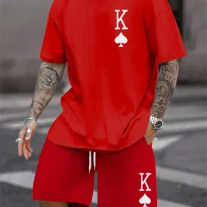2025 Summer New Men's Short sleeved Shorts Set Fashion King Printed T-shirt Shorts 2 sets Casual Round Neck Jumping Breathable S